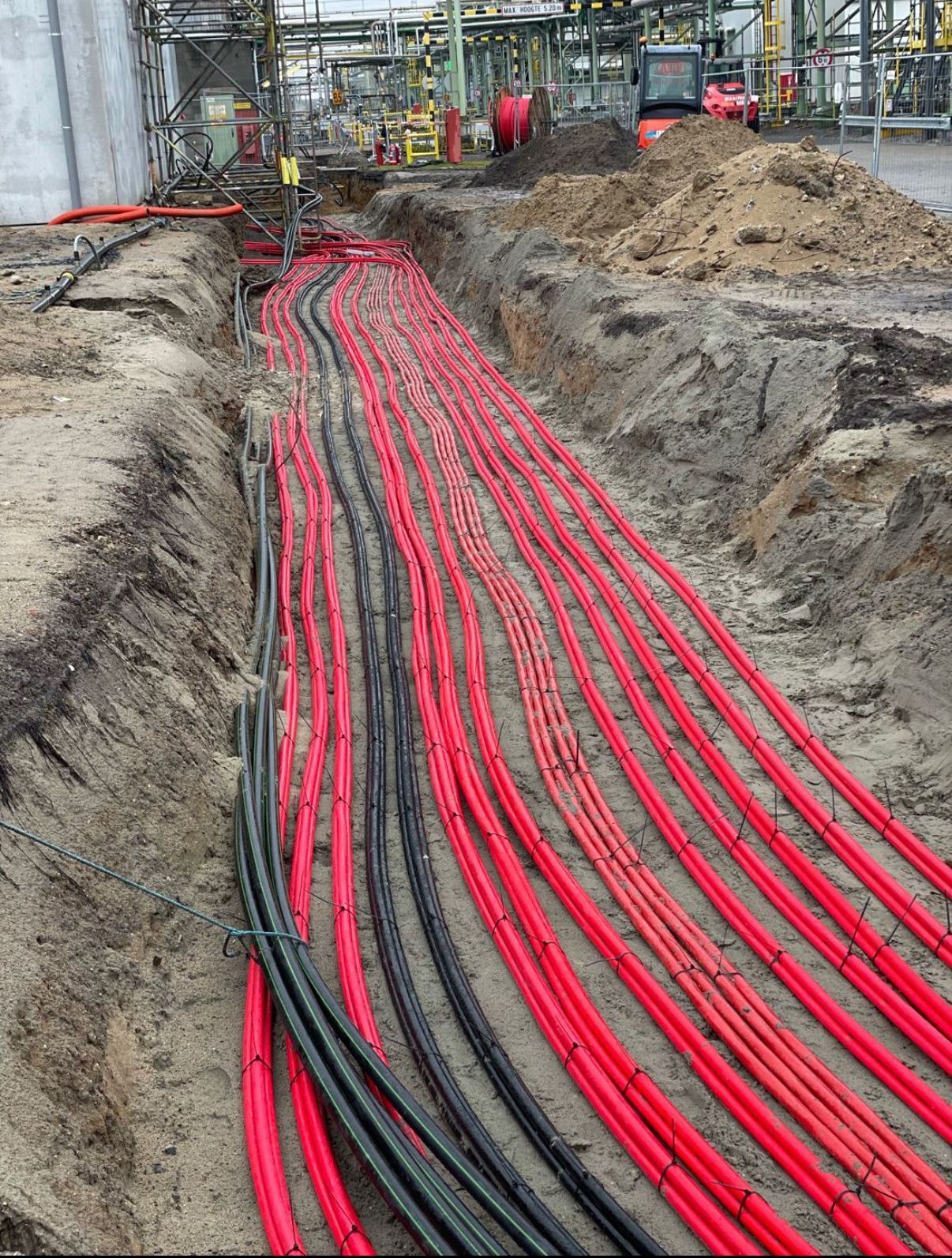Nieuwe middenspanningskabels van bijna 1 km per kabel door ons geplaatst voor een nieuwe hoogspanningscabine.